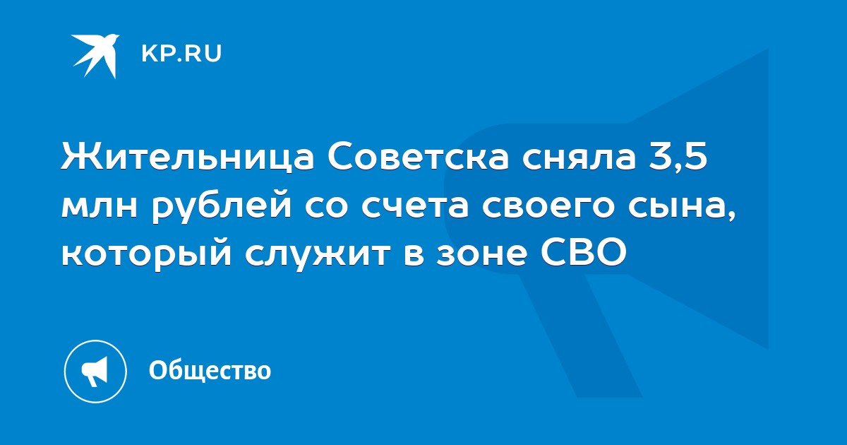 Жительница Советска сняла более 3,5 млн рублей с банковской карты своего сына, который служит в зоне специальной военной операции. Махинацию она провернула еще в 2024 году, тогда же потратила деньги.